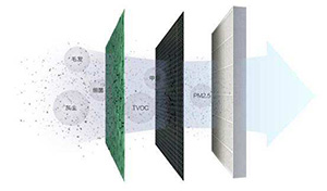 HEPA過濾層(高效率空氣微粒濾芯):是目前被醫療界、實驗室等專業環境認定為較高標準的濾材。真正醫用高精度的HEPA濾材的濾孔直徑可小到0.3微米,用這種濾材折疊后所制成的立體濾芯,增加了過濾面積,不僅有效的過濾和吸附空氣中的細小微粒和細菌,而且延長了使用壽命。
